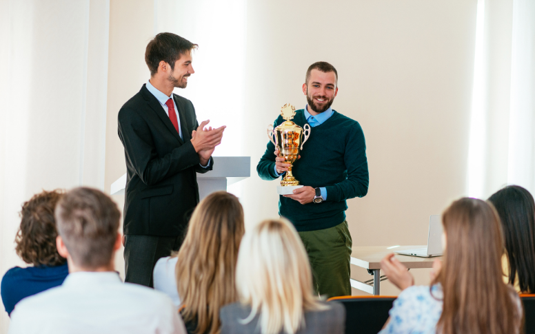 Reward employees, so they feel encouraged, confident, and ready to grow. Award them with trophies of achievement, or other forms of recognition that make them feel positive about their future role in your business!